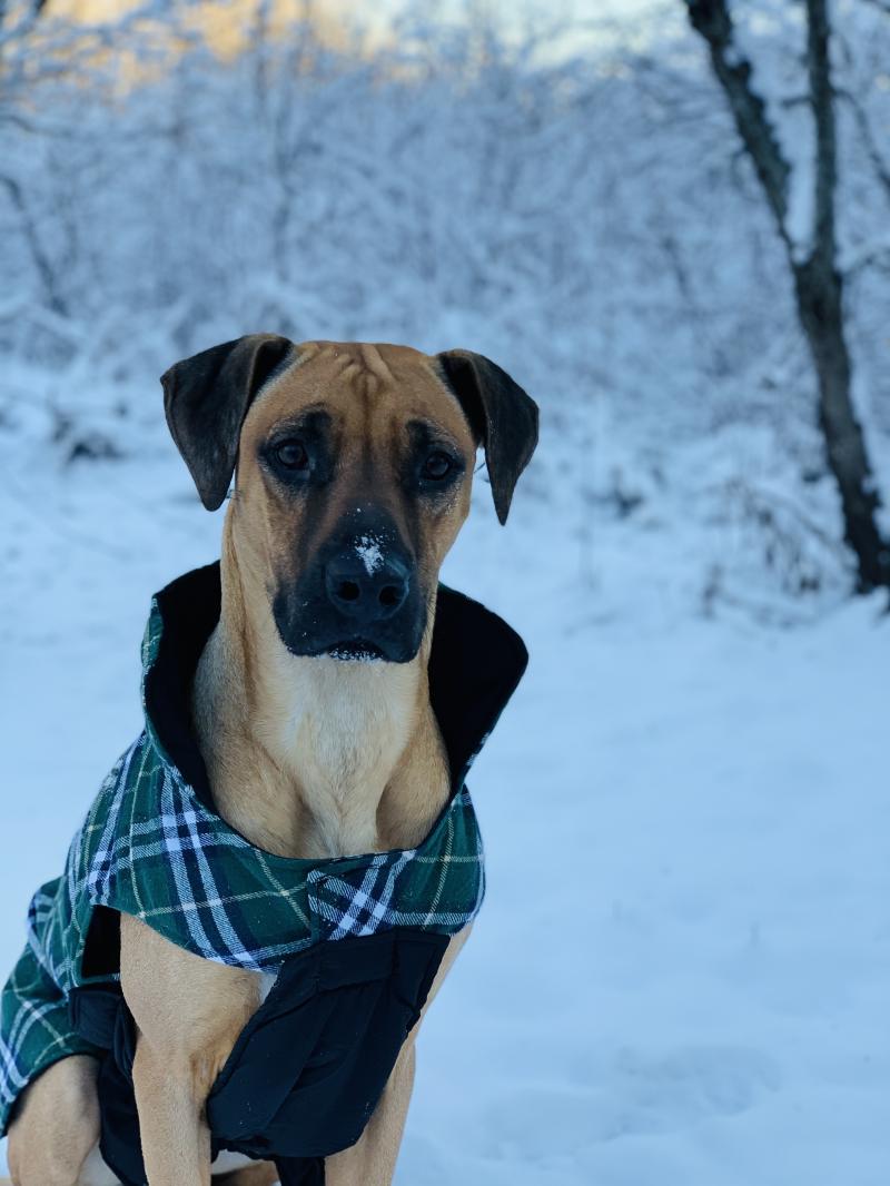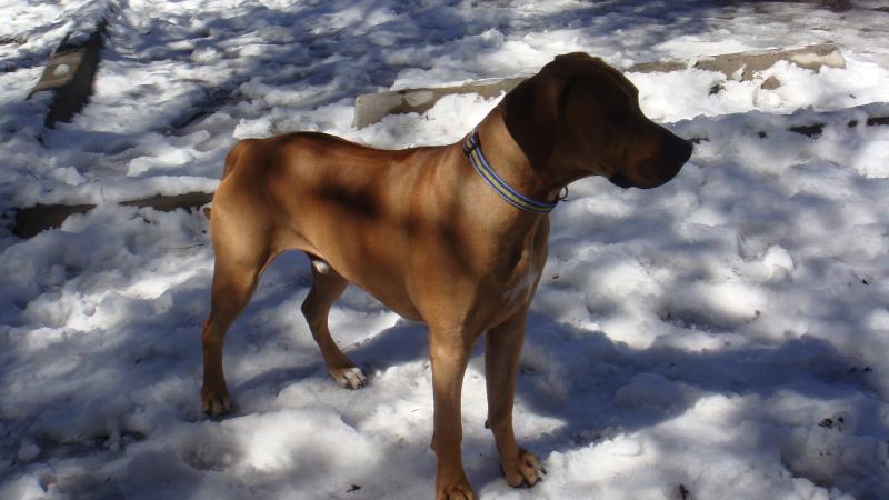 And Whiskey`s sister, Roux, having some fun in the snow.